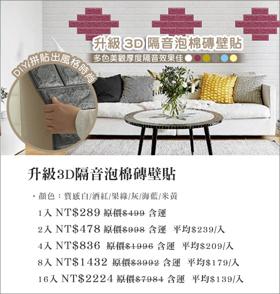 .....升級3D隔音泡棉磚壁貼"哪裡買最便宜.心得文.試用文.分享文